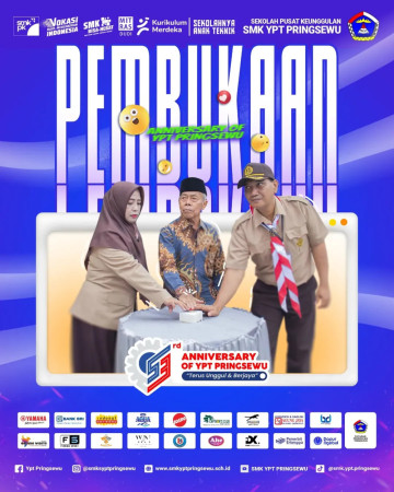 SMK YPT Pringsewu dengan penuh rasa syukur dan kebanggaan resmi membuka rangkaian kegiatan Anniversary ke-53. Perjalanan 53 tahun ini menjadi bukti nyata komitmen SMK YPT Pringsewu dalam mencetak generasi yang berkarakter, kompeten, dan siap bersaing di dunia kerja maupun dunia usaha.